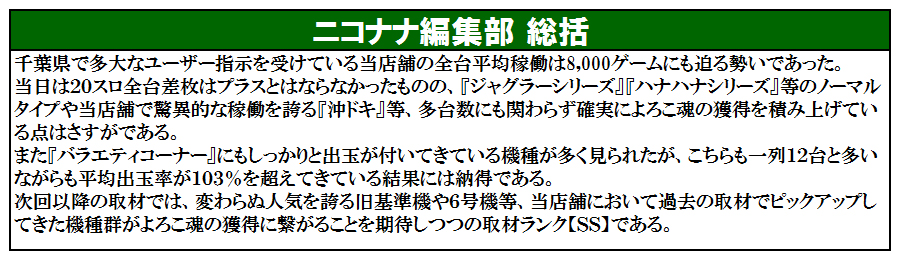 3月11日(月)回胴アンケ「アミューズ千葉店」取材結果
