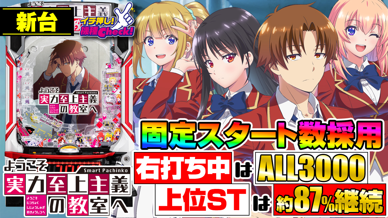 2026年1月5日(月)~導入。 パチンコ 新台「eようこそ実力至上主義の教室へ」最新台! 固定スタートシステ ・・・