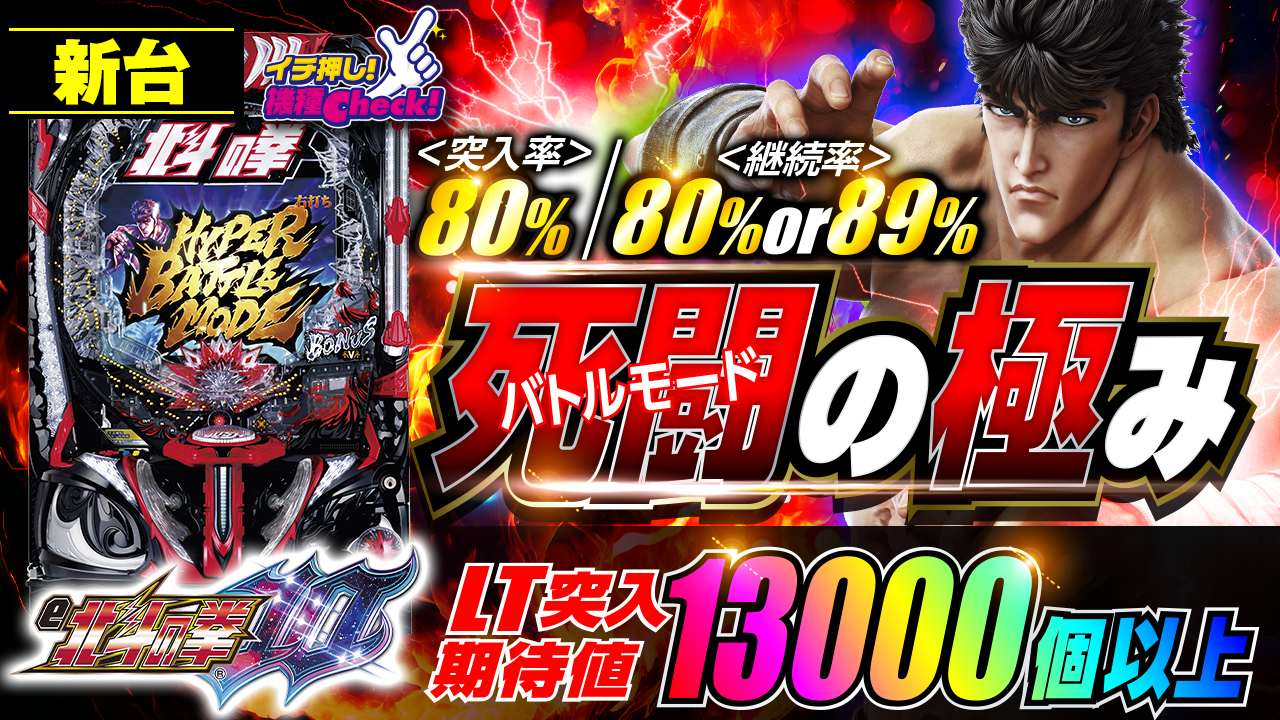 2024年7月29日(月)~導入。 パチンコ 新台「e北斗の拳10」最新台! ケンシロウが負けない限り続く80 ・・・