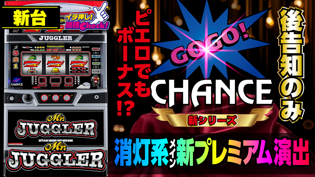 2024年7月22日(月)~導入。 新台「ミスタージャグラー」最新台! リール配列が一新され、ピエロとの同時当 ・・・
