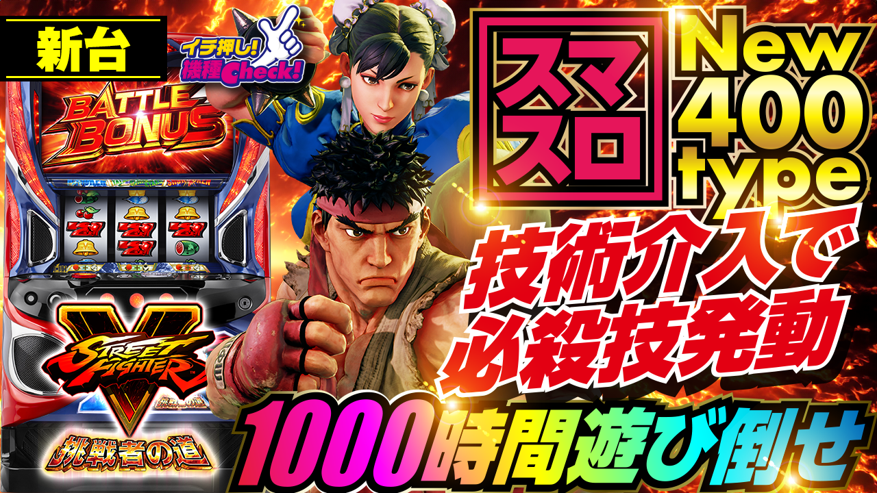 2024年6月3日(火)~導入。 新台「スマスロ ストリートファイターV 挑戦者の道(スマスロ スト5)」最新 ・・・