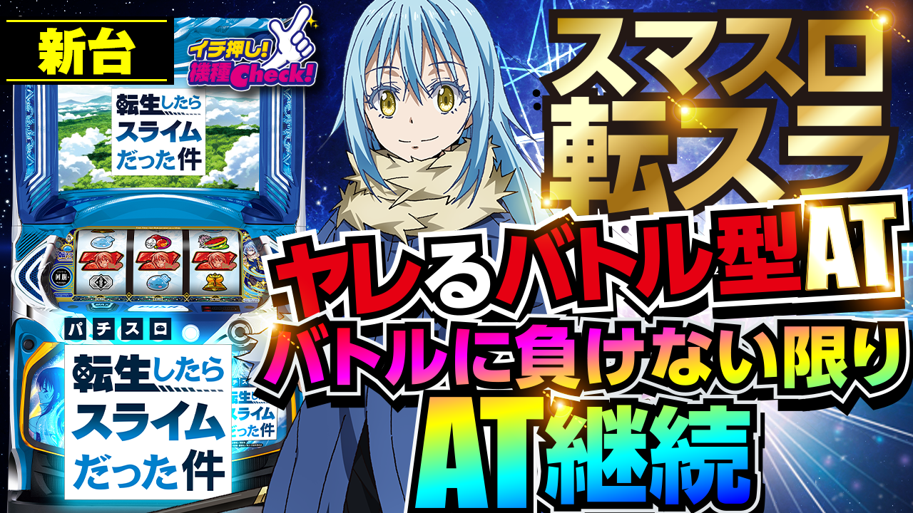 2023年10月2日(月)~導入。 スロット新台「スマスロ転生したらスライムだった件」最新台! 純増約2.5枚 ・・・