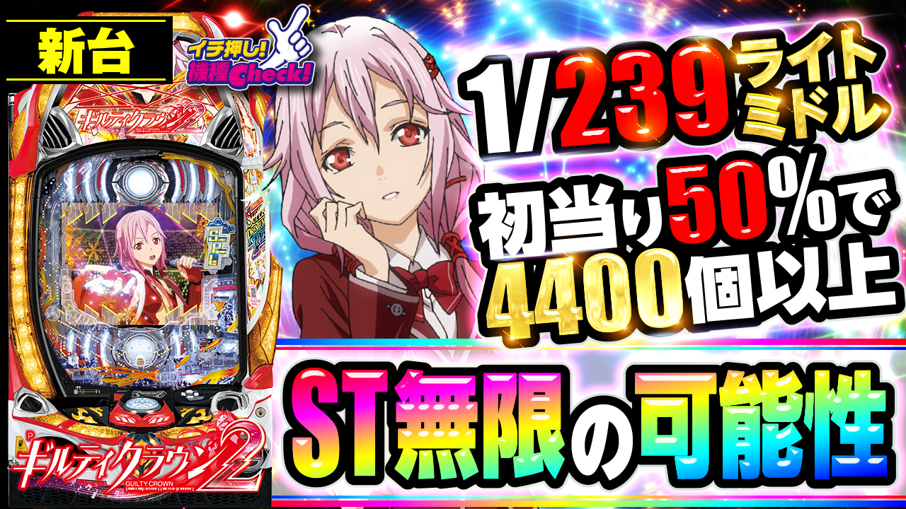 2023年10月16日(月)~導入。 パチンコ新台「Pギルティクラウン2」最新台! 初当りの50%で突入する「 ・・・