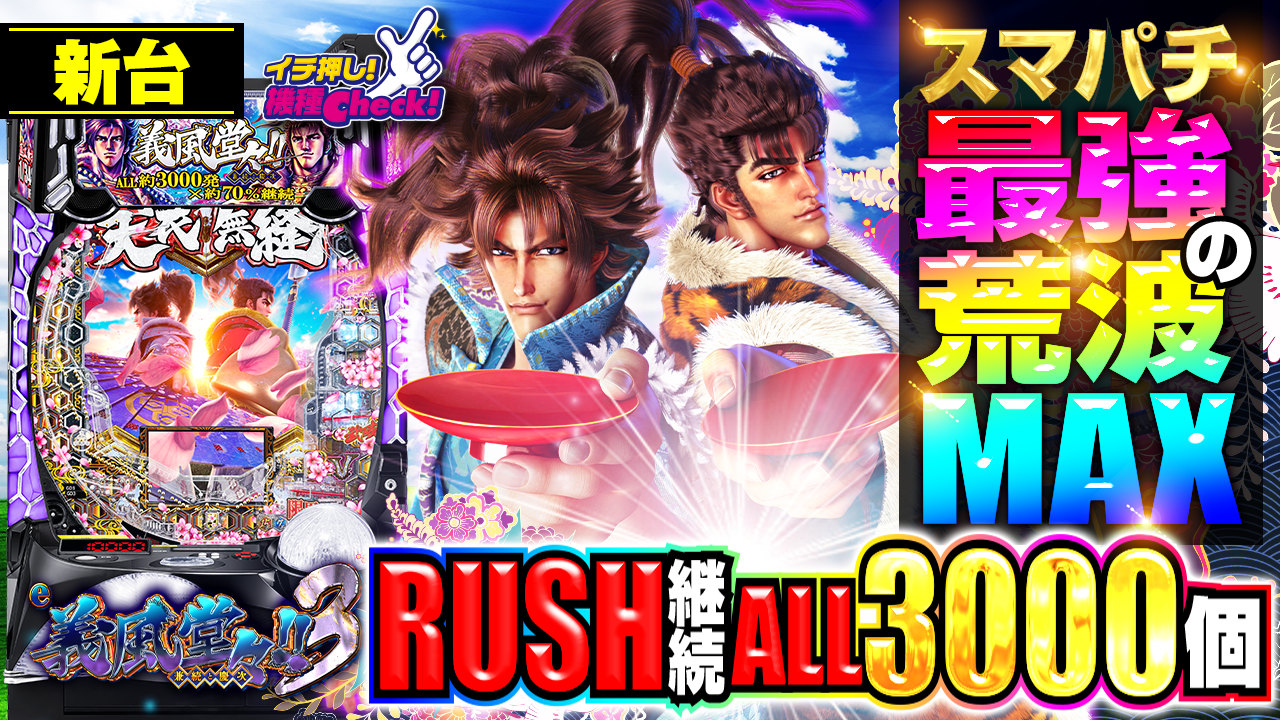 2023年10月2日(月)~導入。 スマパチ 新台「e義風堂々!!~兼続と慶次~3」最新台! 初当りの55%で ・・・