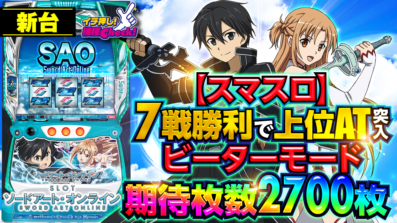 2023年5月15日(月)~導入予定。 スマスロ新台「スロット ソードアート・オンライン」最新台! 初当り軽め ・・・