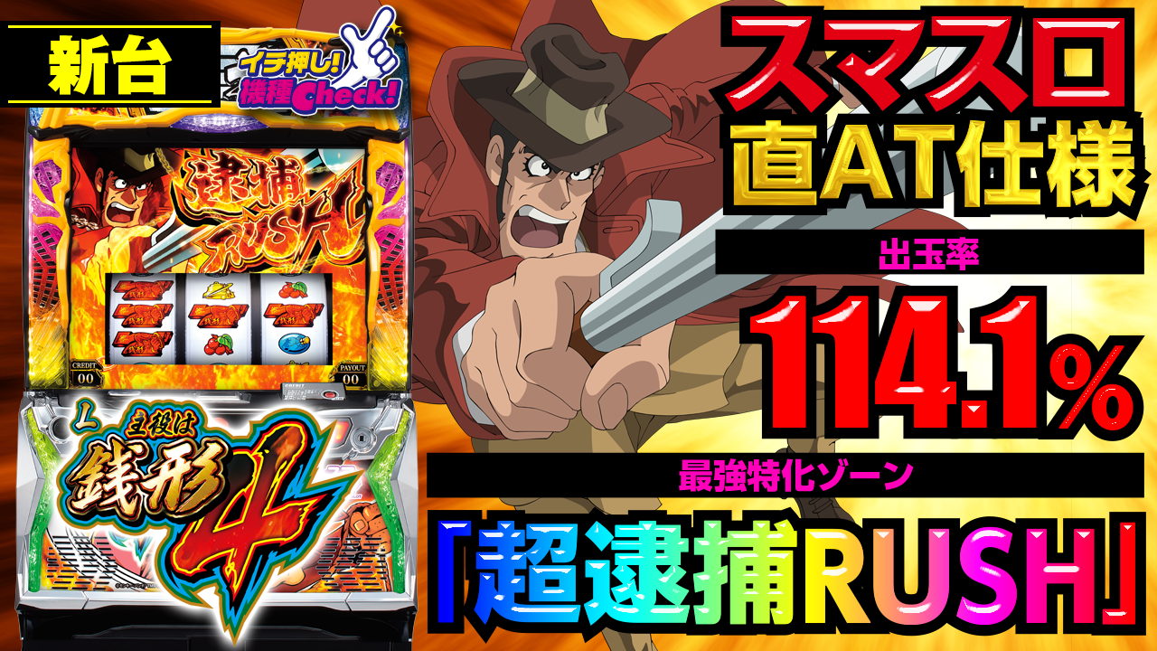2023年5月8日(月)~導入予定。 スマスロ新台「L主役は銭形4」最新台! 設定6の出玉率は圧巻の114%超 ・・・