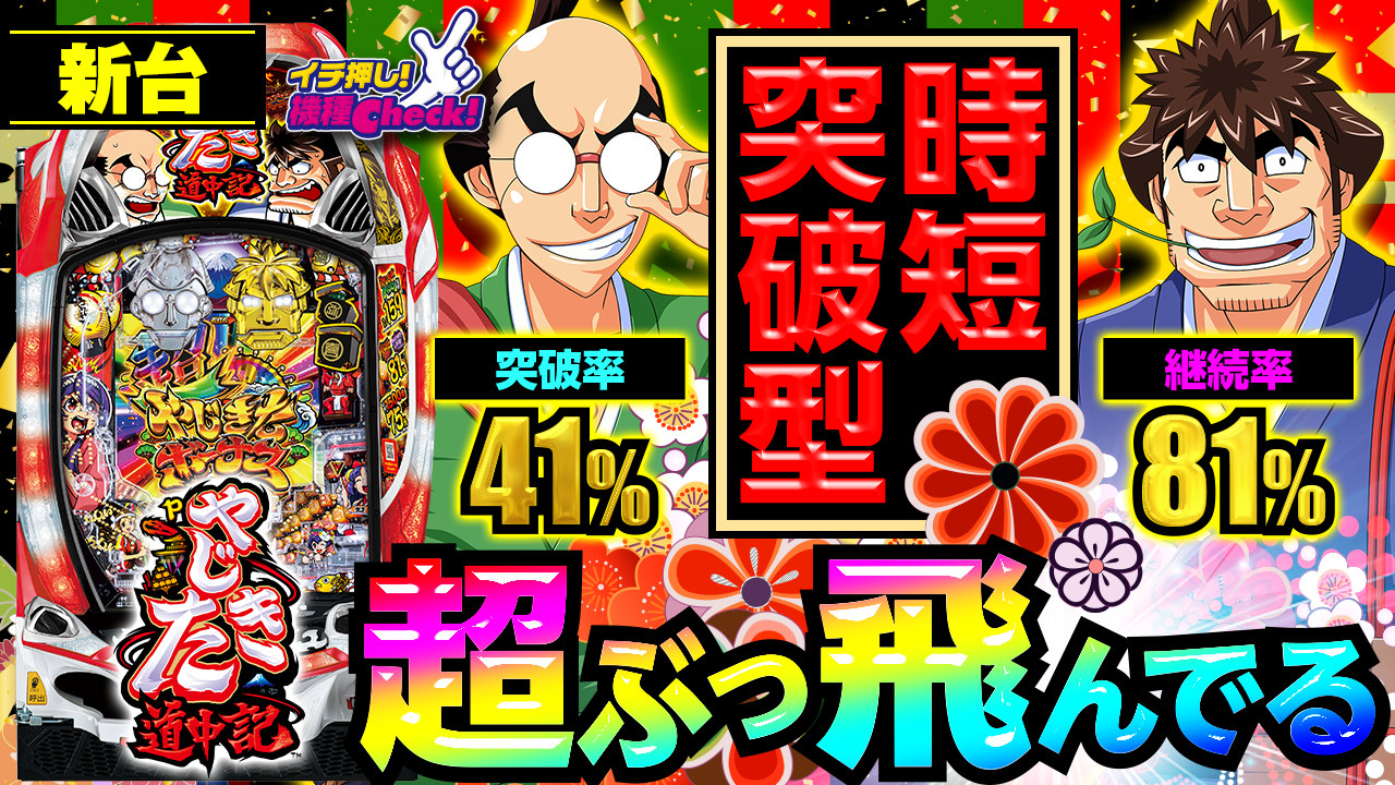 2023年5月22日(月)~導入。 パチンコ新台「Pやじきた道中記」最新台! 約1/159の「やじきたチャンス ・・・