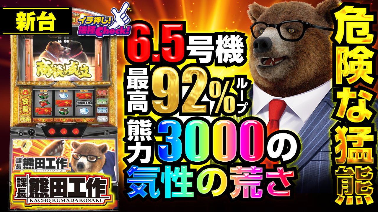 2023年5月22日(月)~導入。 新台「課長 熊田工作」最新台! 小役がチェリーを呼び、チェリーがボーナスを ・・・