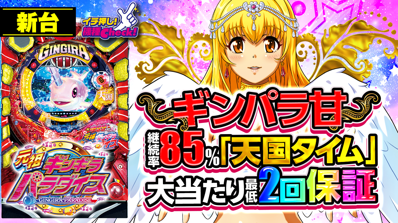 2023年5月8日(月)~導入。 パチンコ新台「PA元祖ギンギラパラダイス 強99ver.」最新台! 継続率8 ・・・