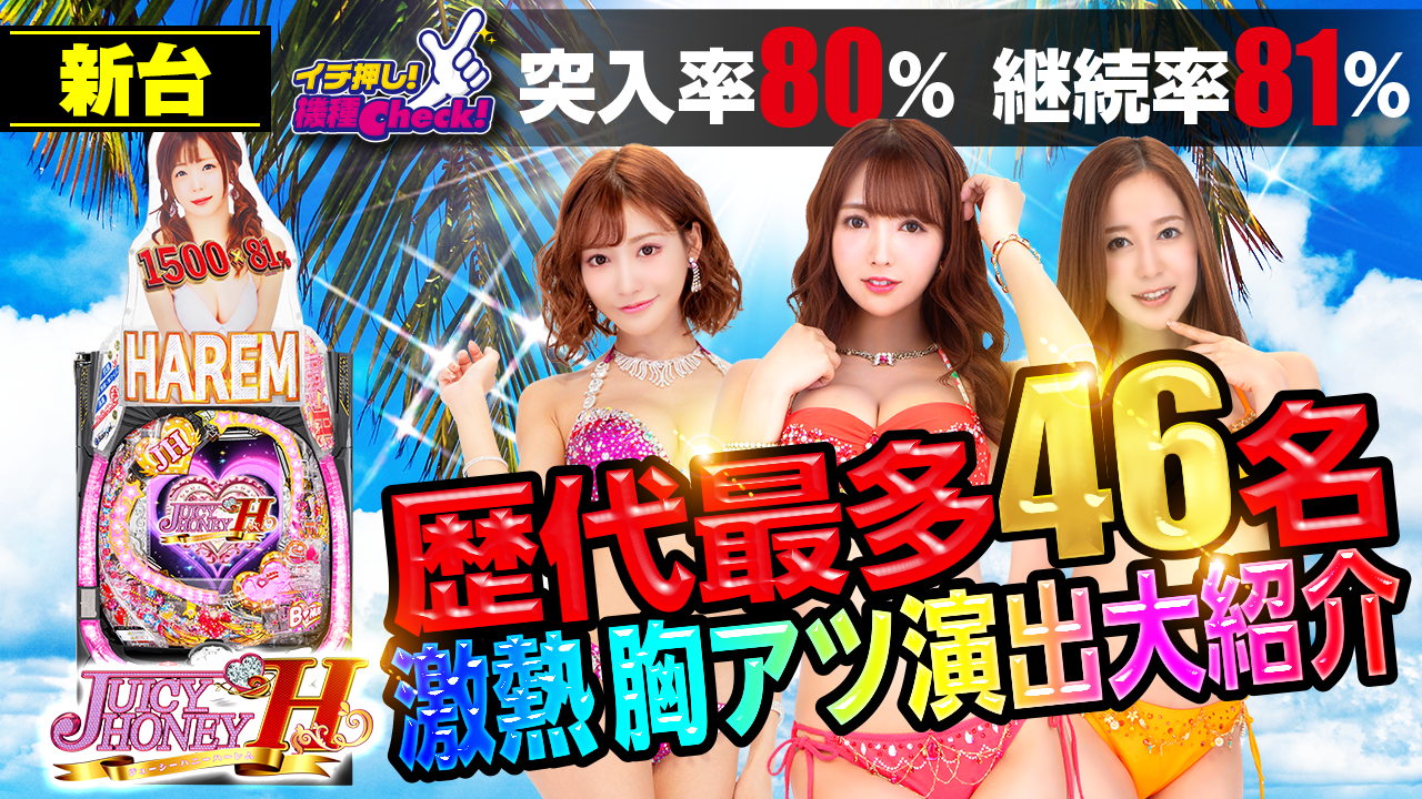 2023年5月8日(月)~導入。 パチンコ新台「Pジューシーハニーハーレム」最新台! これぞ最強のロングSTス ・・・