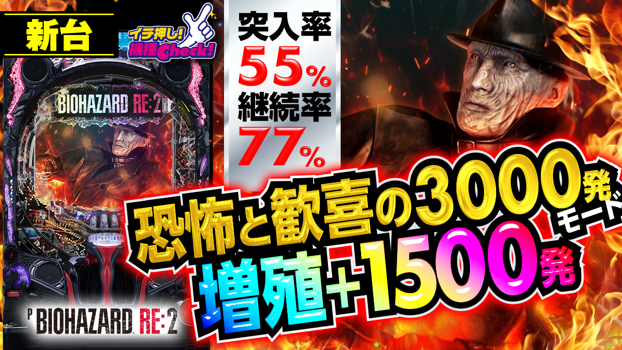 2023年5月8日(月)~導入。 パチンコ新台「Pバイオハザード RE:2」最新台! 初当りの55%で突入する ・・・
