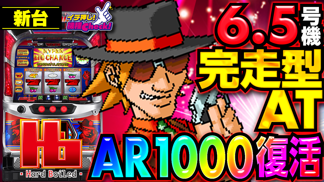 2022年10月3日(月)~導入予定。 6.5号機「ハードボイルド」最新台! 名機復活! 完走型ATでボーナス ・・・