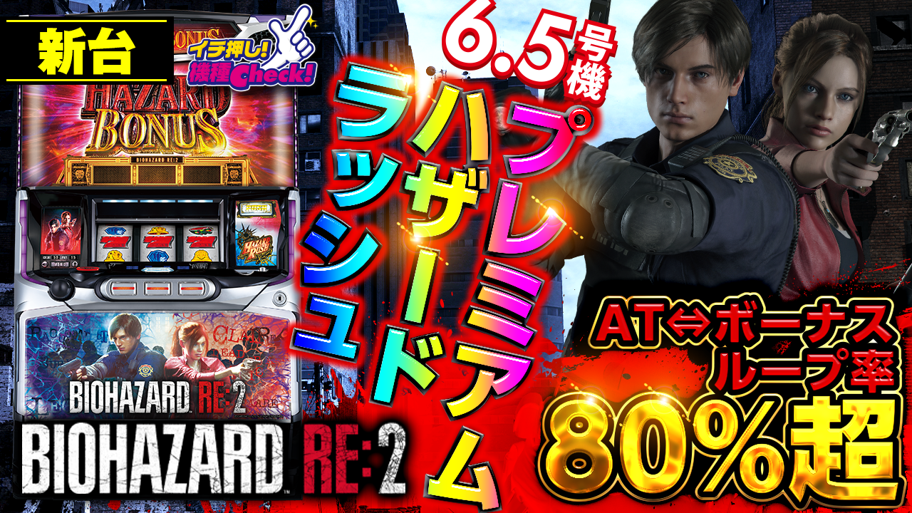 2022年10月3日(月)~導入予定。 6.5号機「バイオハザード」最新台! 増殖するボーナス! プレミアムハ ・・・