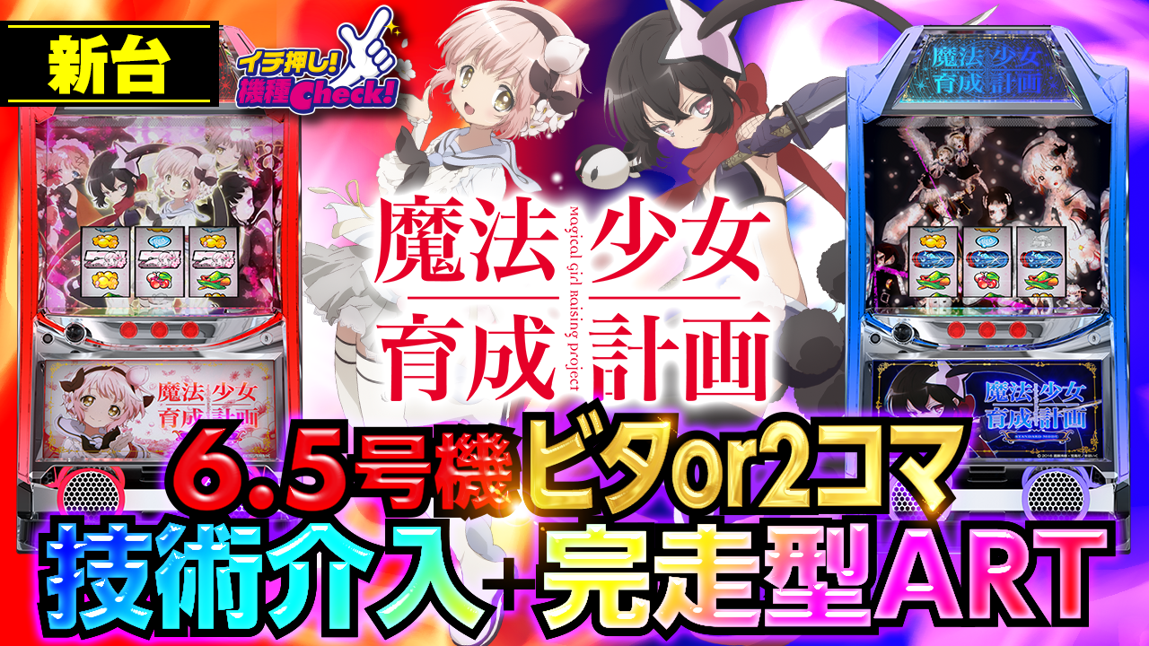 2022年10月17日(月)~導入予定。 6.5号機「魔法少女育成計画」最新台! 青なら2コマ×赤ならビタ押し ・・・