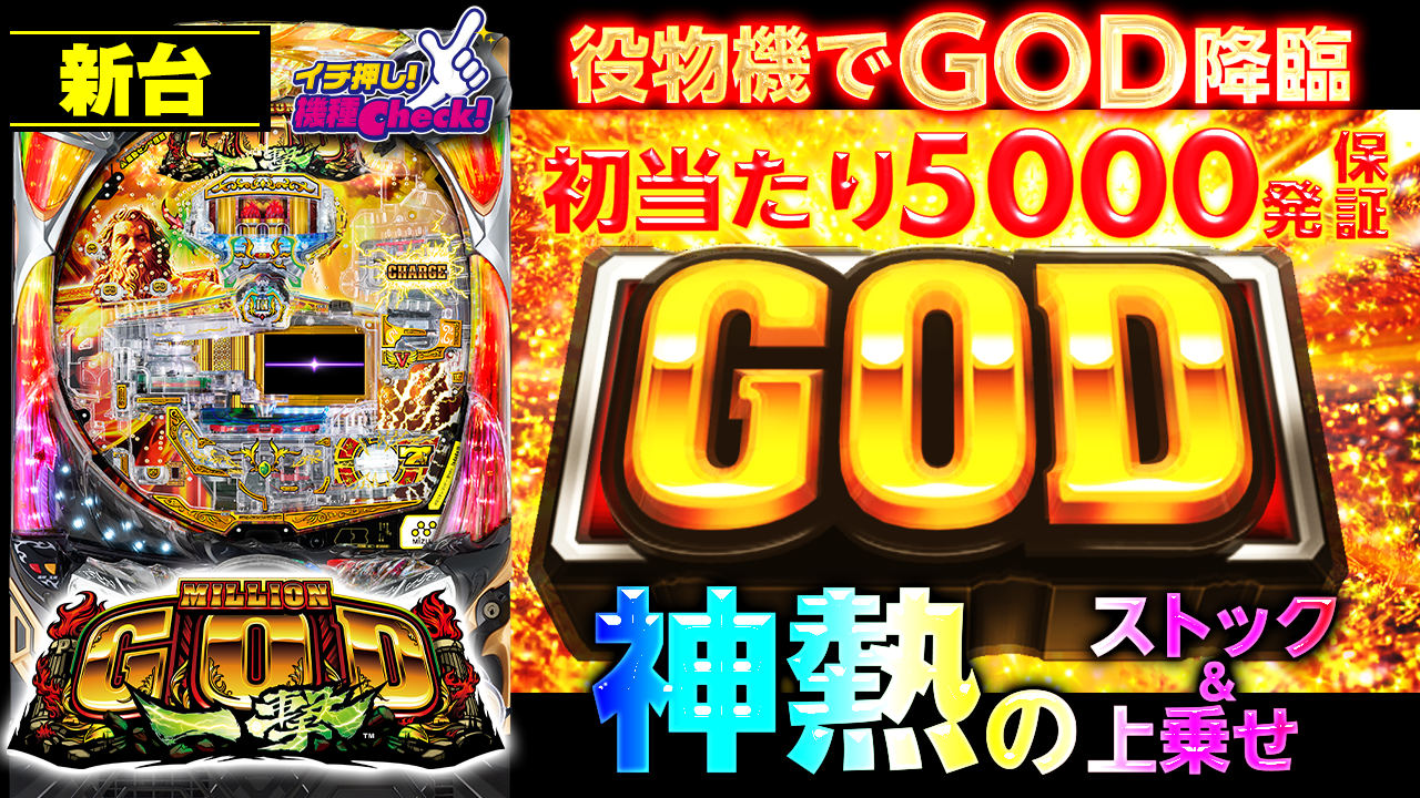 2022年5月9日(月)~導入予定。 パチンコ「Pミリオンゴッド 一撃(ミリゴ一撃)」最新台! 役物機でGOD ・・・