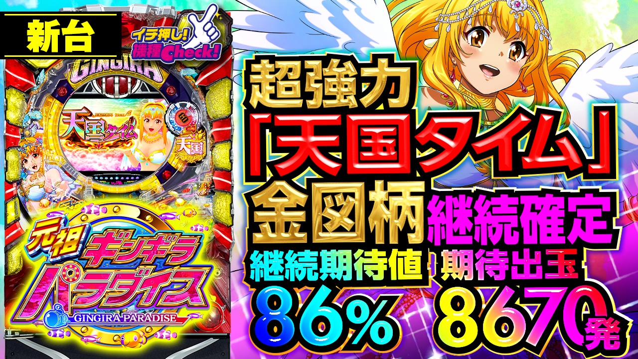 2022年5月9日(月)~導入予定。 「P元祖ギンギラパラダイス(元祖ギンパラ)」最新台! 超強力「天国タイム ・・・