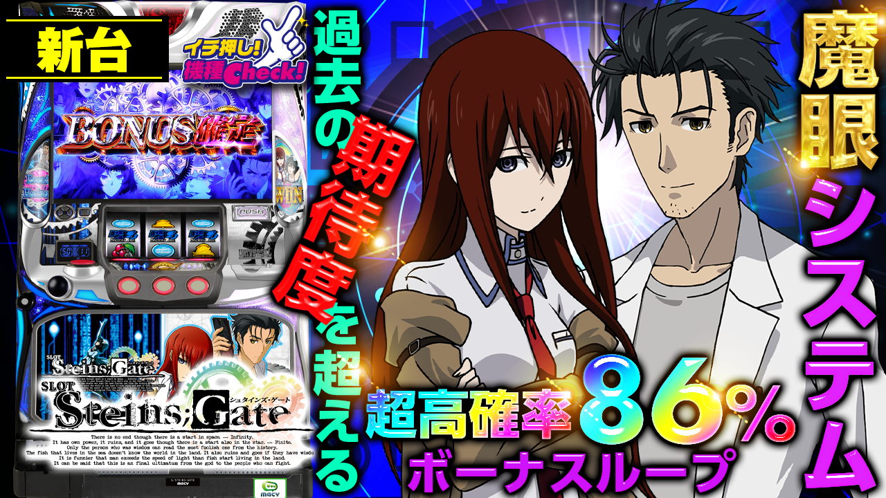 2022年5月9日(月)~導入予定。 6号機「SLOT STEINS;GATE(シュタインズゲート)」最新台! ・・・