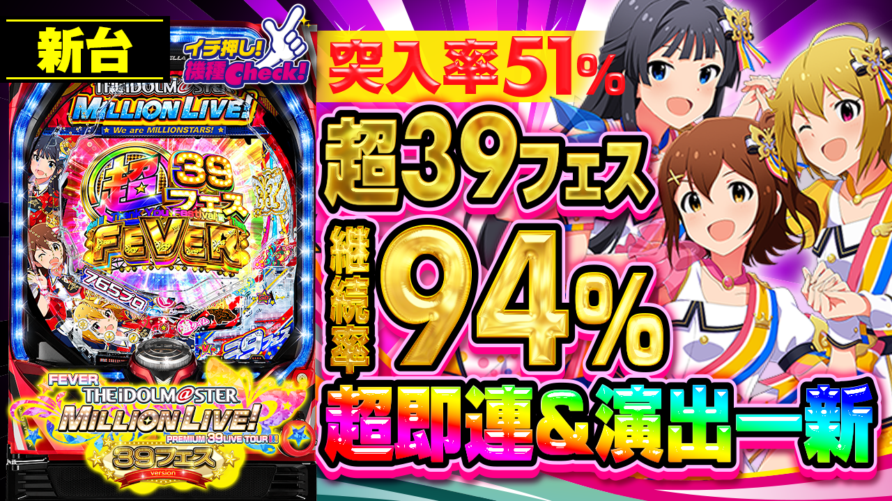 2022年4月18日(月)~導入予定。 パチンコ「Pアイマス 39フェス」最新台! 超39フェスは即当たり継続 ・・・