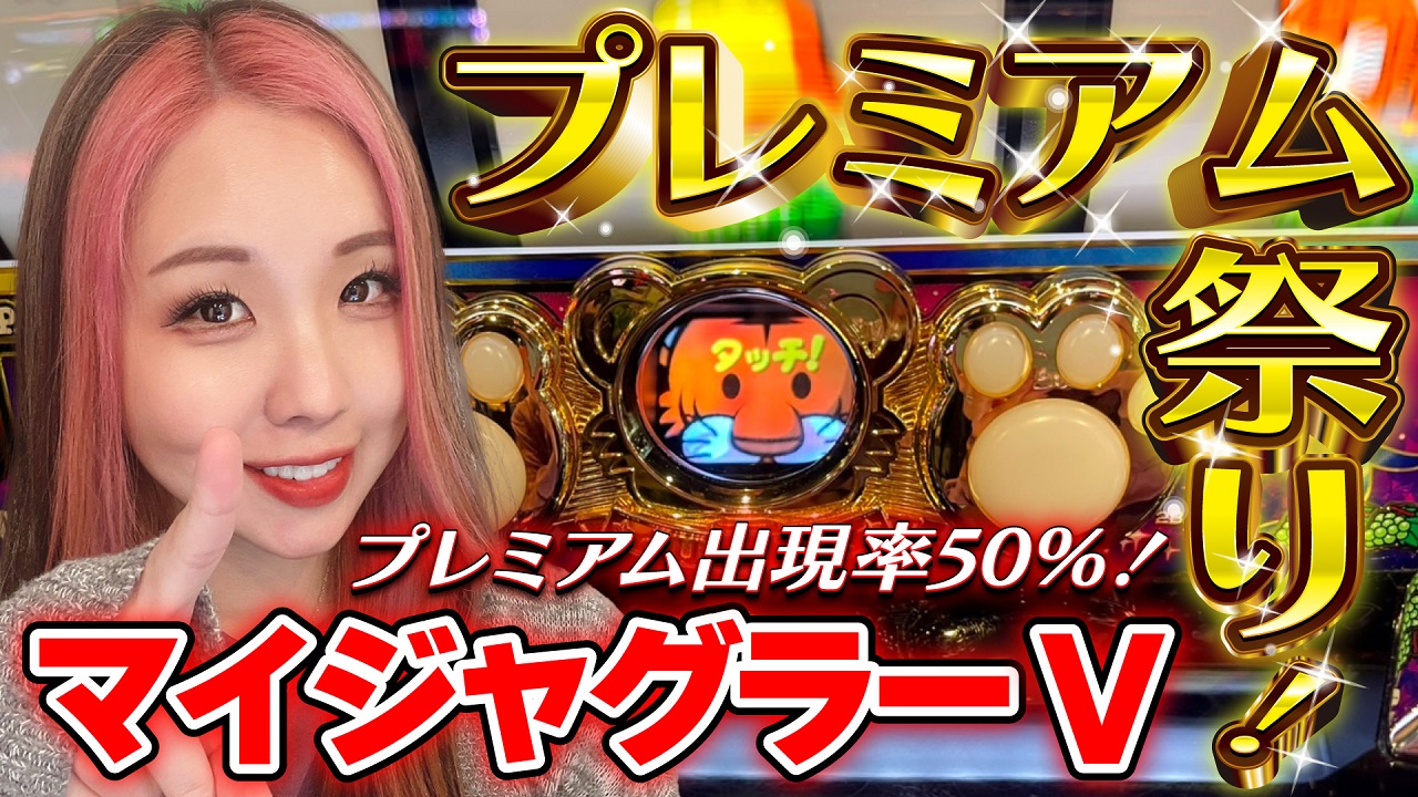朝一から「マイジャグラー5」を実戦! 1日プレミア6回! トラっぴタッチに感動! 設定判別はブドウ確率とレギュ ・・・