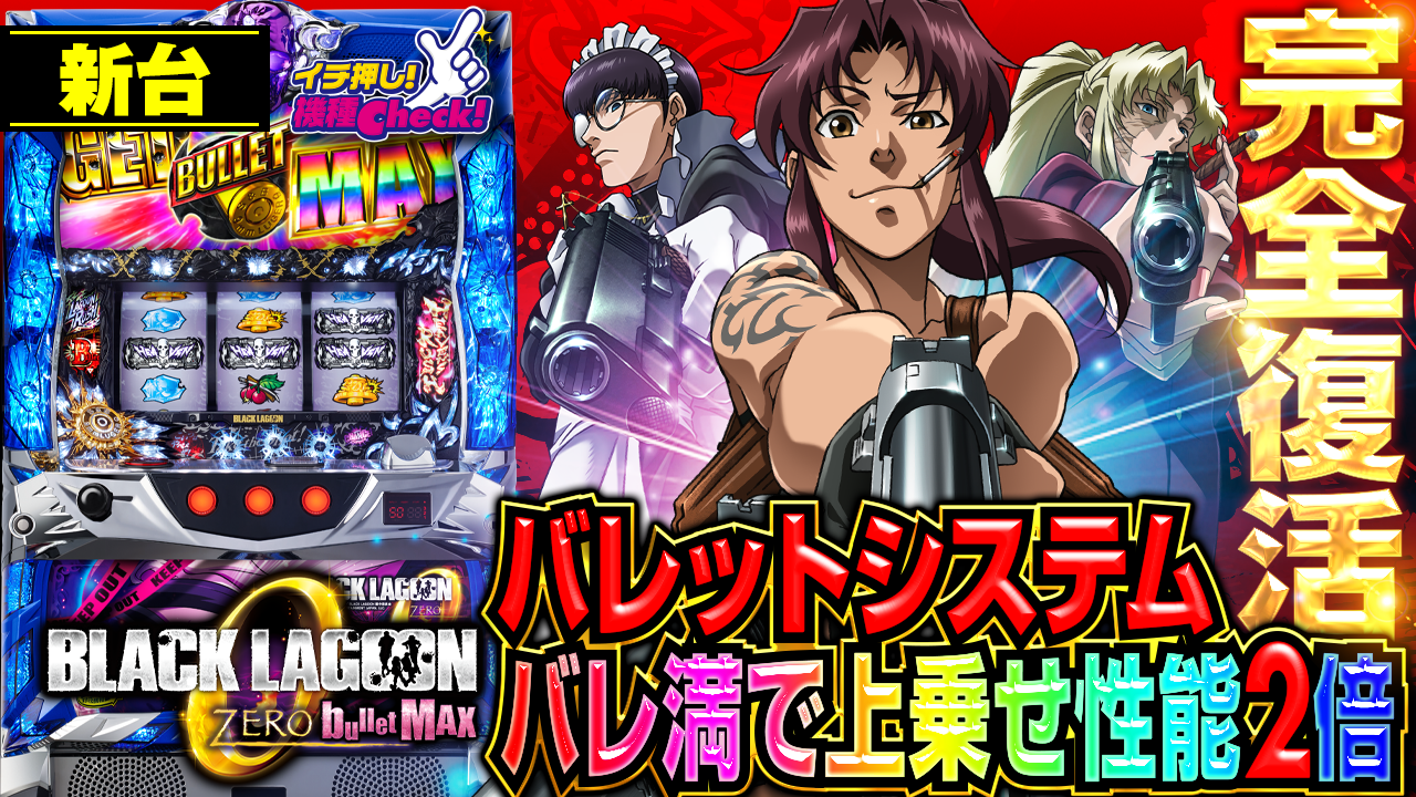 2022年2月7日(月)~導入予定。 パチスロ6.2号機「ブラックラグーンゼロ」最新台! 高純増AT平均590 ・・・