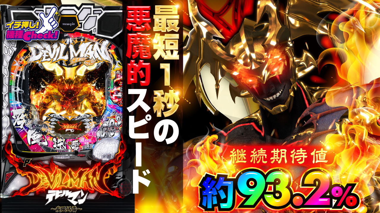 2021年9月6日(月)~導入予定。 アニメ・漫画「デビルマン」最新台! 超最速の悪魔的スピード! 継続率93 ・・・