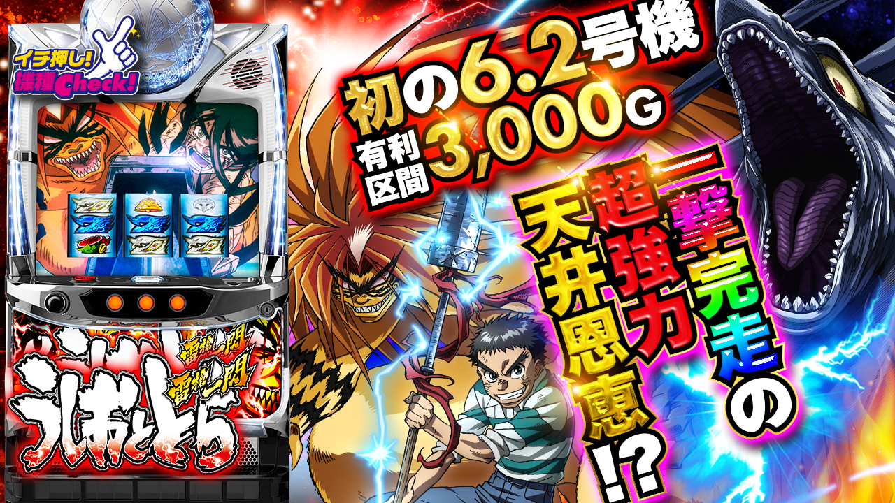 2021年9月6日(月)~導入予定。 初6.2号機「うしおととら(うしとら)」最新台! 強力な天井恩恵搭載! ・・・