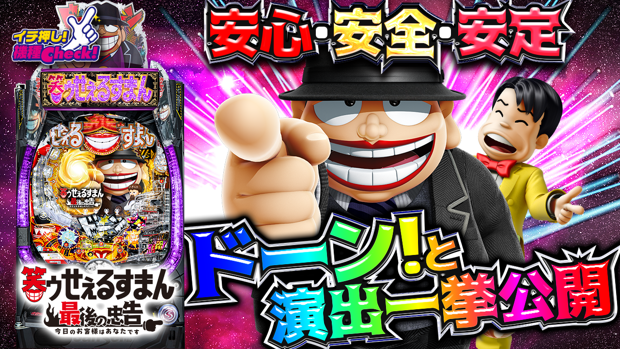 2021年3月8日~導入予定。 「笑ゥせぇるすまん」シリーズ最新台! 軽い初当りと浅い遊タイム突入ゲーム数で打 ・・・