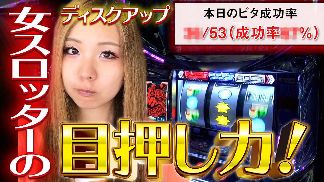 「スロット ディスクアップ」を朝一から実戦! 女スロッターの目押し力! ビタ押し成功率はいかにッ!? コツは椅 ・・・