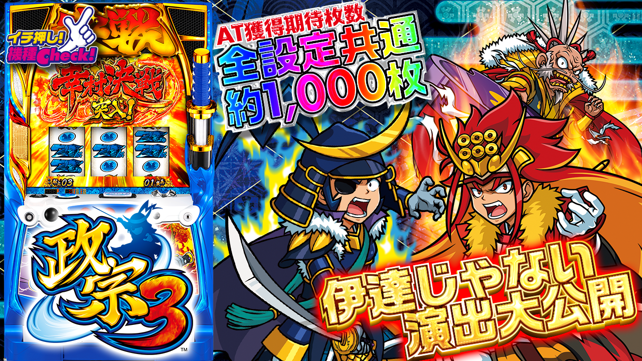 2021年2月8日~導入予定。 6.1号機「政宗」シリーズ最新台! 自力感満載のループ率約88%の「幸村決戦」 ・・・