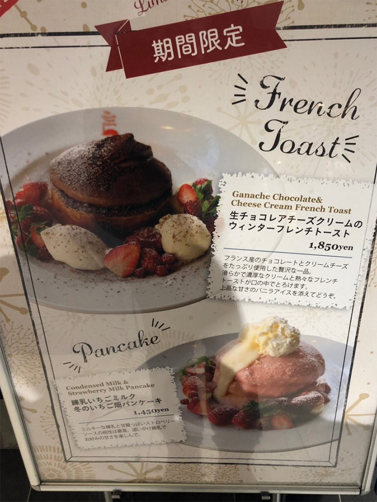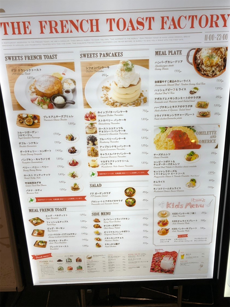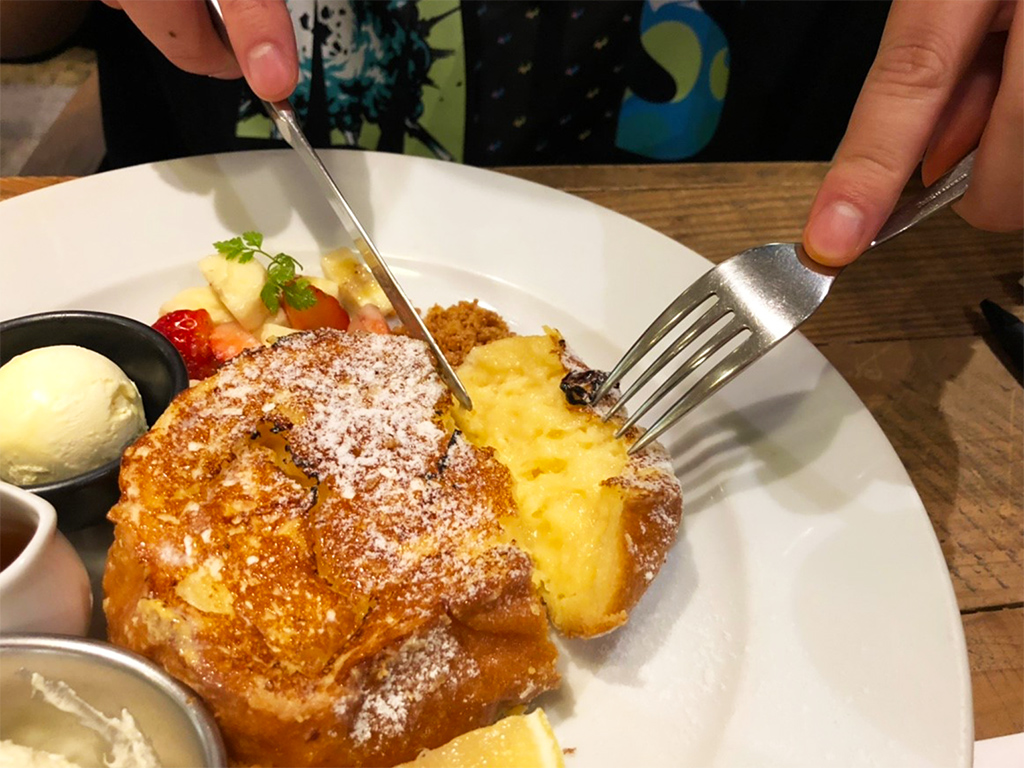 甘いもの好きにはフレンチトースト、フルーツやソースなどのトッピングで甘さの段階を変えたいって人にはパンケーキがおすすめですが、意外と食事系のメニューなんかも充実しているのでカフェ利用はもちろん、食事でも利用出来るってのがシーンを選ばず良いと思います。